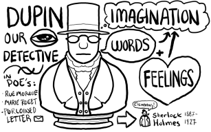 There are many brilliant moves in Poe’s detective stories that show us his skills, using feelings and words to imagine his craft. Feelings are often simple and absurd but also pivotal and profound, and Poe’s tales show us more about moves we make in life. Emotions may be the weakness of words, the Achilles’ heel hiding at the base of all arguments, but feelings are the strength of meaning itself, and we can hardly think without them.