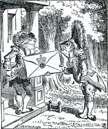 The four royal court figures of both books, the White Rabbit, Duchess, Queen of Hearts and King of Hearts of Wonderland and the Red Queen, Red King, White Queen and White King of the Looking Glass, correspond with Aristotle’s four types of statements and four “perfect” forms of the syllogism, found in Aristotle’s On Interpretation and Prior Analytics: In Wonderland, the White Rabbit is particular and positive, accepting some and some, worried about being late for others and accepting Alice into his house as a servant, the Duchess is particular and negative, rejecting some and some-not with punishments and morals in her house, the Queen of Hearts is absolute and negative, subtracting and excluding anyone entirely for any mistake in her garden, and the King of Hearts is absolute and positive, accepting any and all testimony as equally and entirely valid for consideration in his court.