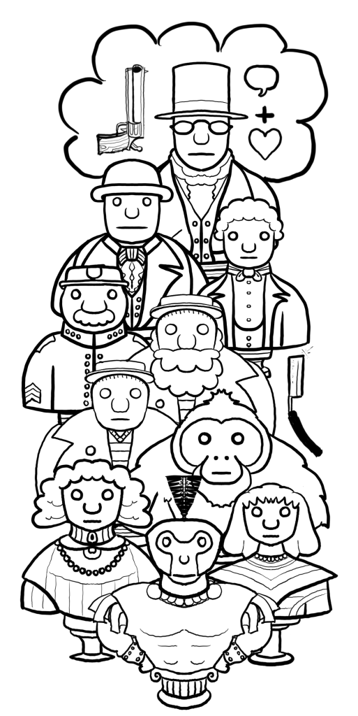 The first sailor’s face is half-hidden by beard but he keeps a razor and says the ape watched him shave. Poe borrowed a bit from the Voyage of the Potomac, a ship that took half a year to sail from New York to Indonesia. If the sailor’s beard is longer than his voyage he lied and the ape didn’t watch him shave, but watched someone shave and someone cut a throat. Poe also borrowed a bit from a folktale about a man who teaches an ape to shave and then cut his own throat. The first sailor cut the throat of the second while the second was shaving, giving the first the opportunity, weapon and motive.