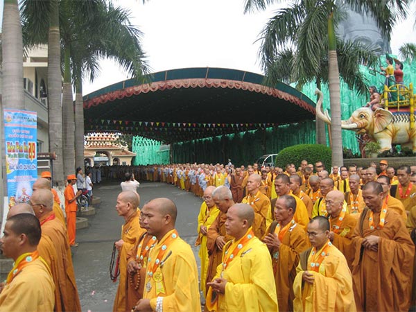 While the House of Linji was coming to power in Song China, the Dinh dynasty (968 – 980) of Vietnam was supporting Buddhism as the state faith, as did the Le (980 – 1009), Ly (1009 – 1225), Tran (1225 – 1400) dynasties, but by this time Neo-Confucianism had become a strong rival in the royal court. The Bamboo Grove school (Truc Lam in Vietnamese), a Thien school native to Vietnam, was founded by one of the Tran Emperors, Tran Nhan Tong (1258 – 1308), which blended Chan with Neo-Confucian and Daoist teachings. After a period when Confucianism and other traditions put it out of royal favor, Buddhism was again given central support by the Nguyen dynasty (1804 – 1945, pronounced “New-Wen”).