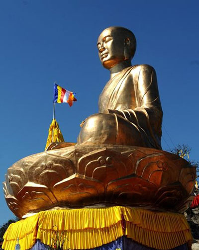One of the most prominent Buddhists of Vietnam and popular figures in Buddhism today around the world is Thich Nhat Hanh (b. 1926), who trained in Thien and Mahayana Buddhism, became chief editor of the academic periodical Vietnamese Buddhism, a professor of comparative religion at Princeton and Columbia during the Vietnam War. Organizing for peace, he was accused of being a communist sympathizer. He met with Martin Luther King Jr. and urged him to denounce the Vietnam War, which King did and then nominated Nhat Hanh for the Nobel Peace Prize in 1967. Nhat Hanh established communities, monasteries and institutes in France, America and Germany. I saw him give a talk at Lake Merritt in Oakland, in which the very slow talking teacher took forever to say, “When… we…. practice… the… way… of… the… Buddha… it… is… like… we… are… walking… on… the… moon…”