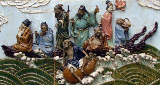 Lu Dongbin, the most popular immortal, a doctor to the poor and master of evil spirits, tricks Guanyin, the Buddhist Goddess, into marrying a mortal man, as if they want her to not simply use beauty as a ruse, but to have sex herself. Lu is himself tricked by two other of the Eight Immortals into getting a beautiful Daoist hermit he has sex with pregnant. Li Tai Guai, one of the two who tricked Lu, is tricked by Laozi himself, who tempts him to stray from his practices with a beautiful daughter who seems to seriously want Li but is actually an enchanted piece of wood.
