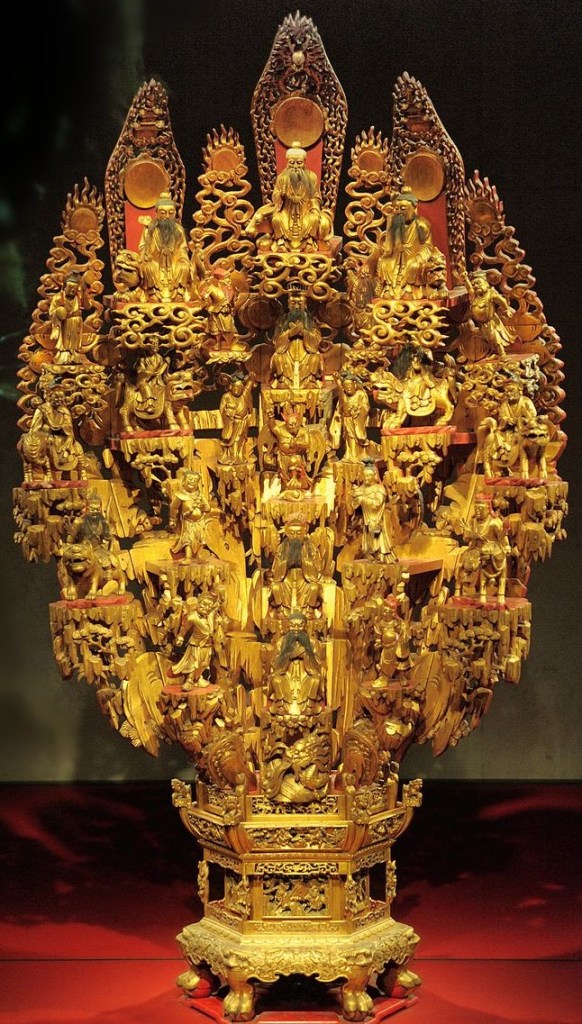 The great Eight Immortals don’t care about rank, act like immoral fools, and take down stupid and greedy nobles, officials and merchants, first and foremost the Jade Emperor, the administrator of the cosmos himself, who had the Immortals thrown out of his birthday party and demoted in the Book of Record for bringing him simple gifts. The Immortals, who don’t care about lying or stealing to do what is right in the long run, steal the Jade Emperor’s best gifts before he can open them, regift them to him along with fireflies and crickets, which the Emperor hasn’t been down to earth to see before, and he invites them in to feed and promotes them in the Book. The Immortals eat food, leave, and don’t care about the promotion or keeping to a position.
