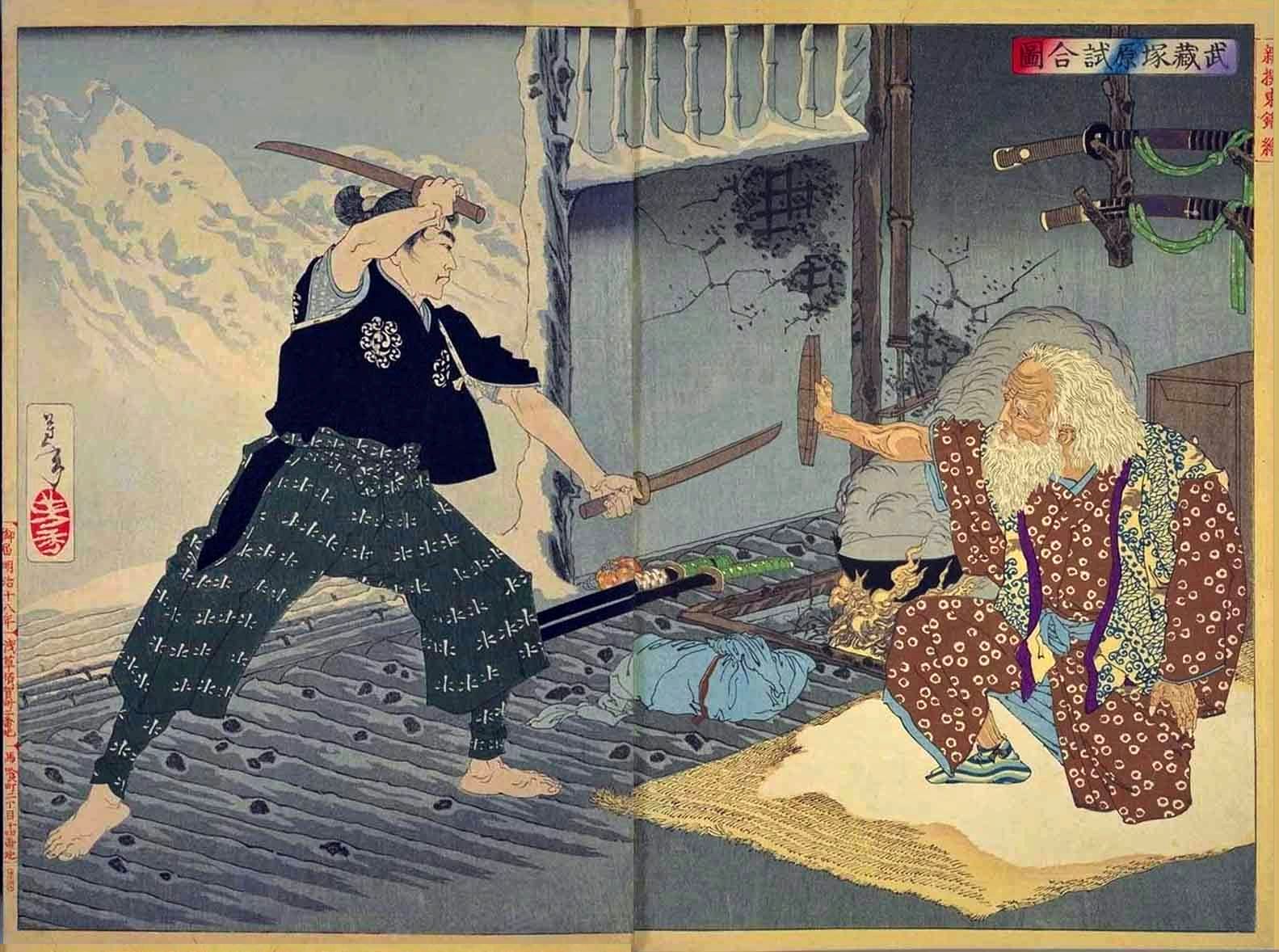 According to one account, Musashi stepped of the boat, wordlessly charged at Kojiro, struck him in the head with a single blow, killing him, then stepped back onto the boat and left with the turning tide to avoid Kojiro’s comrades. In the novel, Kojiro throws his sheath away into the surf as Musashi steps off the boat. Musashi says, “Kojiro, you’ve already lost”. Kojiro, perplexed, asks why. Musashi replies that Kojiro must not think he has any more use for his sword. Clearly, Kojiro meant to intimidate Musashi with his show of total disregard, but Musashi, playing the mental game as Sunzi recommends, turns this confidence into doubt to use his opponent’s show against him.