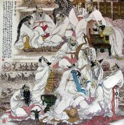 Unfortunately, the emperor died and the new emperor, threatened by Lu, had him exiled and his whole family put to death. As Lu cried over his family in exile, he woke and found he was still sitting in the inn with Han, and the wine was not yet hot. Lu realized the way of earthly power is not the true way, and he left everything to join Han in the mountains and become immortal.