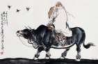 The legend says Laozi gave up on civilization as China continued to fall apart, and rode a water buffalo west to live as a hermit, but as he was about to leave the state he was recognized by the border guard Yin Xi who pleaded with him to leave his teachings for the people before leaving society. Laozi agreed and in the dirt road wrote the 81 passages of the Daodejing before disappearing forever.