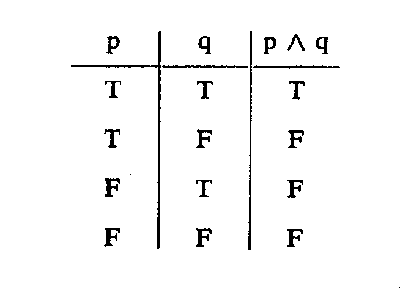 While Chrysippus also developed the physics and ethics of Stoicism, he is most famous for his contributions to Logic. The Stoics learned much logic from Aristotle, but they found his syllogistic forms insufficient for dealing with all meaningful propositions. While Aristotle’s syllogisms make use of ‘If’ and ‘then’, they do not deal with common conjunctions such as ‘and’, ‘or’, and ‘because’. Modern European logic, based on the work of Frege, Russell, and Wittgenstein, made use of these sorts of conjunctions. Above is Wittgenstein’s truth table for demonstrating how ‘and‘ works. If p and q, which stand for complete statements, are both true, then “p and q” is also true. If either p or q or both are false, then “p and q” is also false.