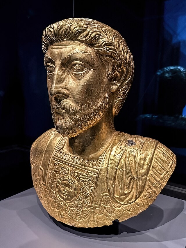 Marcus ruled as Emperor of Rome from 161-180, and brought a period of stability with the senate and prosperity in the empire, ruling together with Lucius until Lucius died from illness in 169. A supporter of philosophy, Marcus re-established teaching positions in Athens for four schools of Greek philosophy: Platonism, Aristotelianism, Epicureanism and Stoicism. Germanic tribes began invading northern Italy in 170, and Marcus waged war against them in Italy and Germany until his death. Marcus also put down a revolt in 175 by Cassius (130-175), Roman governor of Egypt and Syria who proclaimed himself emperor after hearing falsely that Marcus was on his deathbed. Unfortunately, Marcus’ son Commodus (161-192), who followed Marcus as emperor, was a poor-ruling tyrant who was assassinated.