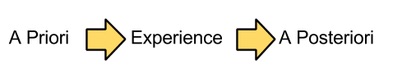 Unlike Berkeley, Kant believes that there is a “thing-in-itself” beyond appearances, the Ding an sich in the German, using the Latin term noumena for the things themselves and phenomena for our perceptions of them. Kant argues that we can never know the thing in itself, but we can know the way that we form ideas about appearances. Next week, we will study Phenomenology, the attempt by Hegel, Merleau-Ponty and others to create a “science of appearances”. Kant used another pair of Latin terms to distinguish between rational and empirical truth, to separate the objective from the subjective. That which is known before and apart from all experience Kant labeled a priori, and that which is known after and through experience Kant labeled a posteriori.