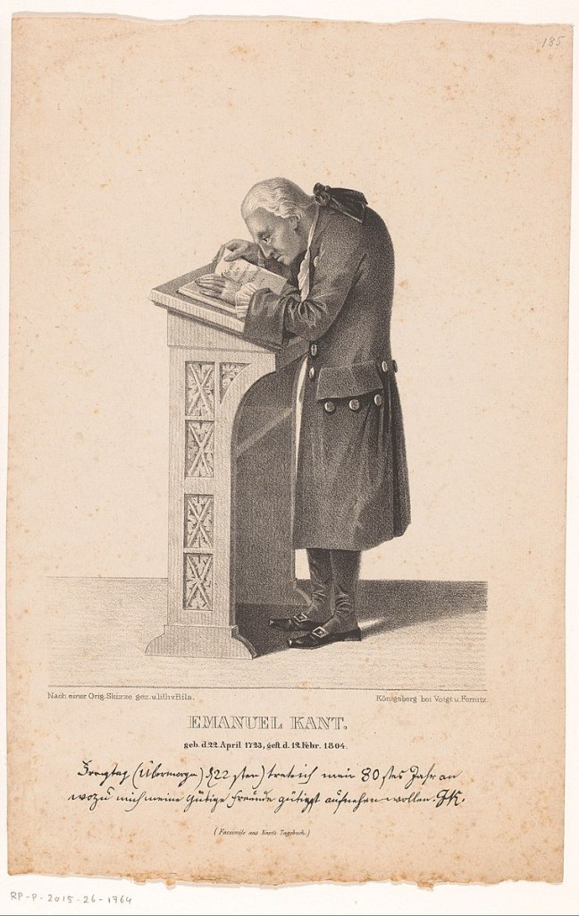 It is said that Kant never traveled more than fifty kilometers from his hometown in his entire life. He was known for being obsessively punctual, and legend has it that he would take his daily walks after lunch so routinely that housewives would set grandfather clocks as Kant passed by their houses. Kant would always walk alone, as he believed it proper and healthy to breathe through one’s nose in the open air and so kept his mouth closed outside. He was also deeply disturbed by perspiration. It is said that the only morning Kant broke from his usual strict routine was to purchase a newspaper announcing the outbreak of the French Revolution, an event that, like the work of Kant, had a great impact on Hegel, the next figure we will study.