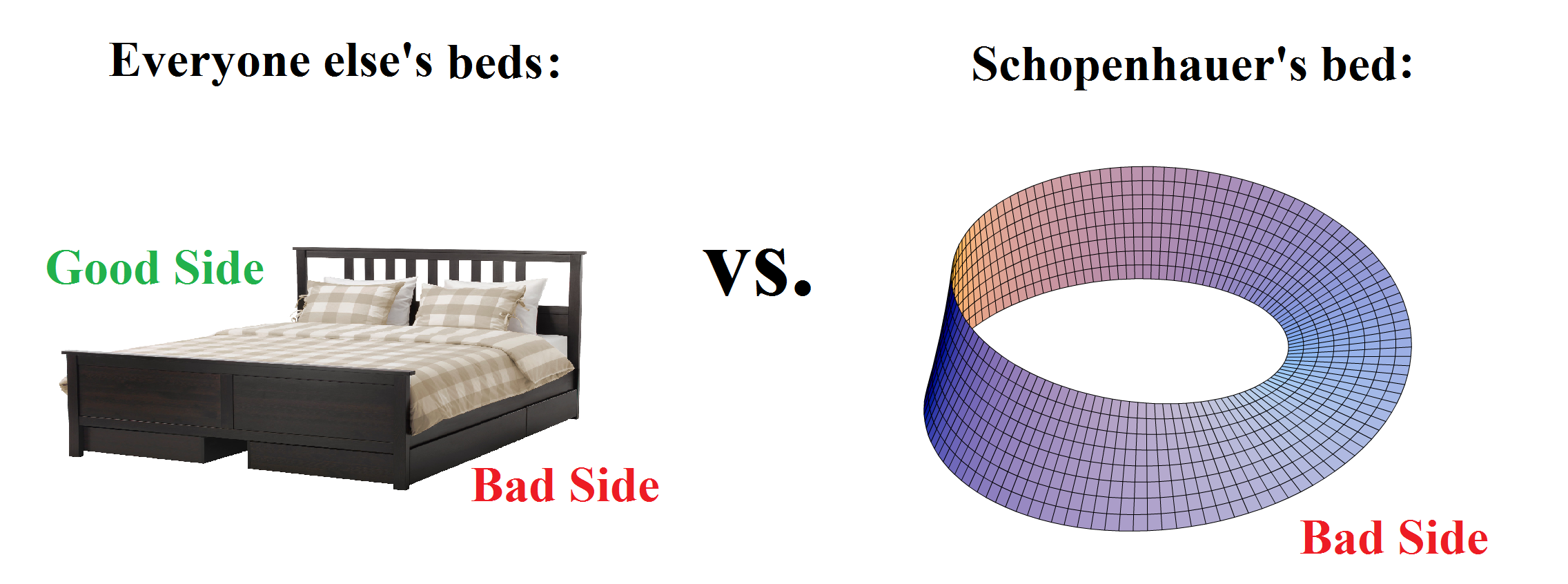 Schopenhauer also ridiculed Hegel’s conception of history, which presented the West and Germans as the summit of human civilization and world history. Schopenhauer did not see civilization as a progression, but rather the same old mess it has always been. Society is a painful struggle of will. Beneath representation, the divisions of abstractions, there is only one will, divided and at war with itself. The world’s wars and social conflicts, such as the uprisings that contributed to German pessimism, convinced him humanity remained much the same, without the possibility of Hegel’s great ascension. Schopenhauer believed that time doesn’t progress, and wrote that the history of a village and the history of an empire teach us the same thing. This is a very cyclical and cynical view of humanity, one I admit I enjoy.