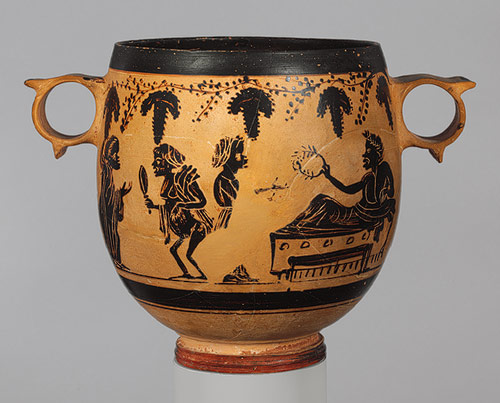 Adding to his reputation as a dog, he is said to have defecated in the theater and urinated on people who insulted him. In one tale, Diogenes was invited to a rich man’s party, but his behavior attracted the anger of one of the guests who began to call him a dog and throwing bones at him. Diogenes walked up to him, lifted his robe, and peed on him. Once, when invited into a man’s home and told not to spit on the floor, he cleared his throat and spit in the man’s face. Another time, when the Athenians had outlawed masturbation, he stood in the marketplace masturbating, calling on all honest men to join him. When asked later about this, he said that he wished it were just as easy to cure hunger by rubbing one’s empty stomach. This technique, like his walks with the lamp, failed to find an honest man in broad daylight.