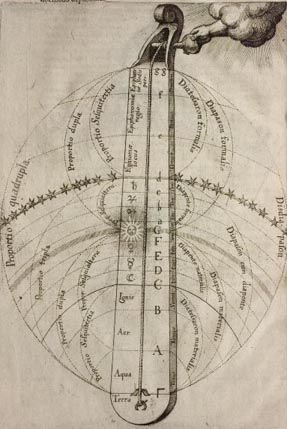 For Pythagoras, the cosmos is ruled by order, specifically mathematics and music. The story goes that as Pythagoras was passing a blacksmith’s workshop, he heard the various hammer blows harmonizing with each other. On closer inspection, he discovered that the hammers created different tones proportionately to their size, so a hammer harmonized naturally with another half its size. While this story is thought to be false, he could have discovered the same in numerous ancient cultures by measuring string lengths of various instruments.