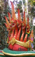 They journey to Kotigama, Nadika and Vesali, where Buddha teaches about balance, concentration and wisdom as he has. In Vesali, the famous courtesan Ambapali (a ganika, a cultured woman who entertains, like a Japanese geisha, whose name means Mango-Guardian) drove in her finest carriage to meet Buddha, listened with delight to him speak, and invited him to a meal in her home. The Licchavis, who dress in all blue, all white, all yellow, or all red, with makeup, also invite Buddha to a meal, but Buddha says Ambapali asked him first, angering the Licchavis, though Buddha gives them a lecture that delights them and they leave happy. Buddha is not seduced by Ambapali’s beauty, but Ambapali became a follower of the Buddha, but no nun.