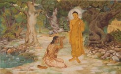 In the central Mahasatipatthana Sutta, which conveys many central Buddhist doctrines for Theravada Buddhists, Buddha says, prefiguring Zen, to be aware of chewing, savoring food, taking a piss or giving a crap. The body is like a bag of various grains, here this organ and that, there this element or that, and the aware can examine the body with the body as awareness much like a butcher slaughtering a cow at a crossroads, with this part of the cow’s body this way and another part that way, with the body as place that awareness traverses. When we see bodies in graveyards, bloated and decaying, bitten and picked at by crows, vultures, dogs and jackals, or see a flesh-less, scattered skeleton, we should keep in mind that this and every other body has the same fate. Buddha says there is sensation of the body, emotion and how we feel, awareness of mind, and imaginary mental objects, and anyone who practices being mindful of these four things will become enlightened in this life or in a life after this one, whittling it down to a solid week of awareness for anyone who can.
