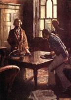 Dupin asks the sailor to sit, and says that he envies him, as he has caught a valuable beast. The sailor sighs, relieved, and Dupin says he can pick up his ape at a stable in the morning. The sailor says he will pay a reasonable reward, and Dupin says he would like the sailor to tell him everything he knows about the murders the other night as he quietly locks the door, puts the key in his pocket, pulls out a pistol and sets it on the table. The sailor’s sunburned face flushes, he rises to his feet with his club, then falls back trembling, the converse of turning to go but then knocking confidently. The narrator pities him from the bottom of his heart, sympathizing with this dual-natured sailor, both man and beast, violent and victim.