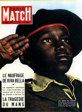 Roland Barthes, a French thinker and literary critic, argues that any speech can be mythologized and through any medium. At the barbershop one day, he was upset by the cover of Paris-Match (a magazine much like Newsweek & Time in America), which showed a young African boy in French military dress saluting. Barthes writes that the cover is meant to signify that France is a great empire in which all are equal, and that this boy is being made to serve his colonialist oppressors. The image is a sign that stands for a modern myth, namely that France stands for freedom. In doing this, it is a deformation and distortion of the realities of French colonial Africa. It is a gesture that is deliberately misleading, alienating the meaning from the situation. It is an alibi for French colonialism.