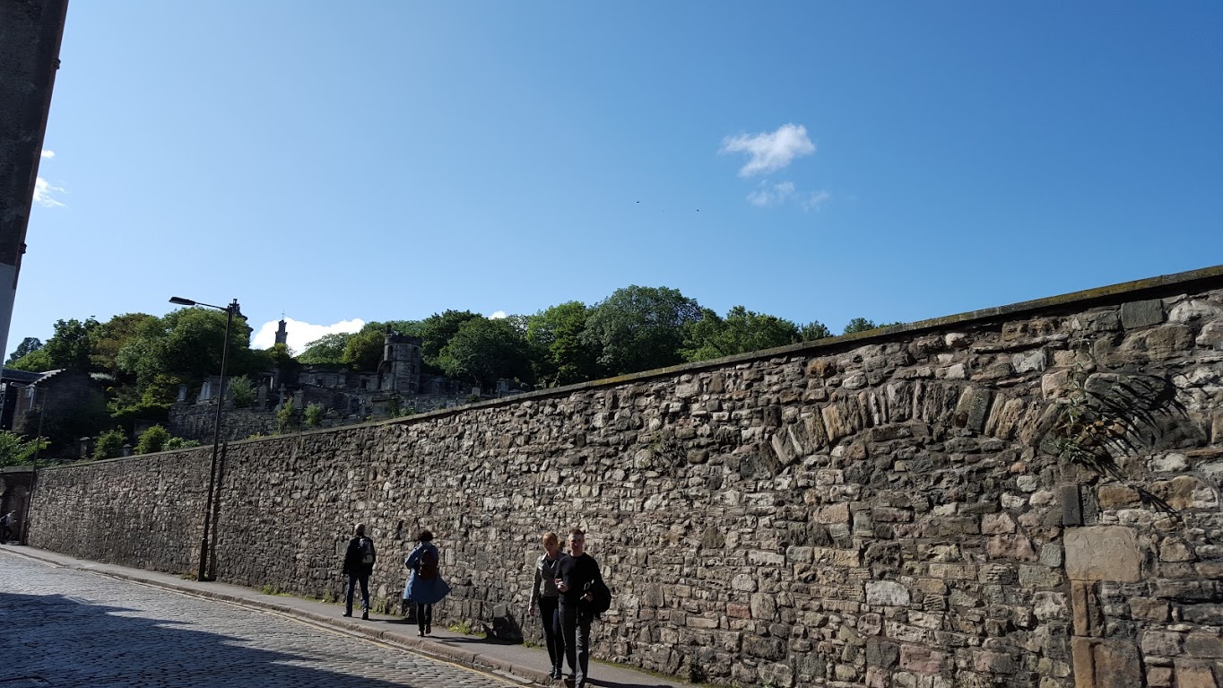 I had the good fortune of traveling to Edinburgh, Scotland recently, and while I was there I decided to track down the grave of one of my favorite modern European philosophers, David Hume. I learned that his grave was located on Calton Hill, near the end of the Royal Mile and Scottish Parliament. Even so, I had a bit of an adventure trying to find it. At first, I thought it was somewhere in the Canongate Church graveyard, but failing to find it there I wandered down the rest of the Royal Mile to the cemetery that I could see was on the side of Calton Hill. I saw a circular tower that was a possible candidate.