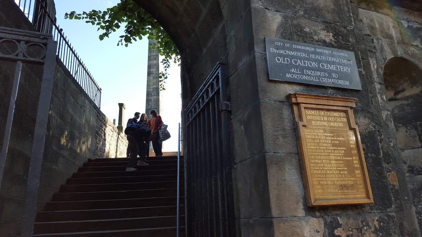 I ran down the hill and the stairs to Princes Street, and found the gate to the Old Calton Cemetery. I was greeted by a plaque that told me it was here!