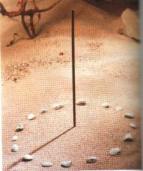Anaximander introduced the gnomon into Greece, a tool the Babylonians and Egyptians had used for centuries before. Basically, it is a stick in the ground, which functions as a sundial. This allows shadows to be measured on the ground and then studied. The sun draws a curve, moving from long to the west in the morning, shortest at noon, and long to the east in the evening.